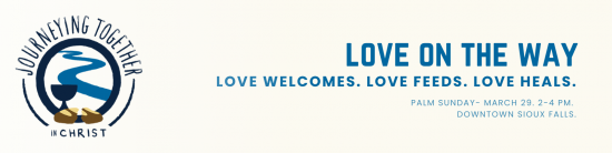 On Palm Sunday (March 29th), from 2-4 pm CT, Christians of all denominations are invited to gather in downtown Sioux Falls for a positive, non-partisan, and prayerful procession, worship, and reflection on Jesus’ way of love. We will walk, pray, and sing as a public witness to the love of God revealed in Jesus Christ: love that welcomes, feeds, and heals. Participants are invited to bring palms from their Sunday worship services. Clergy are encouraged to wear the symbols of their office.